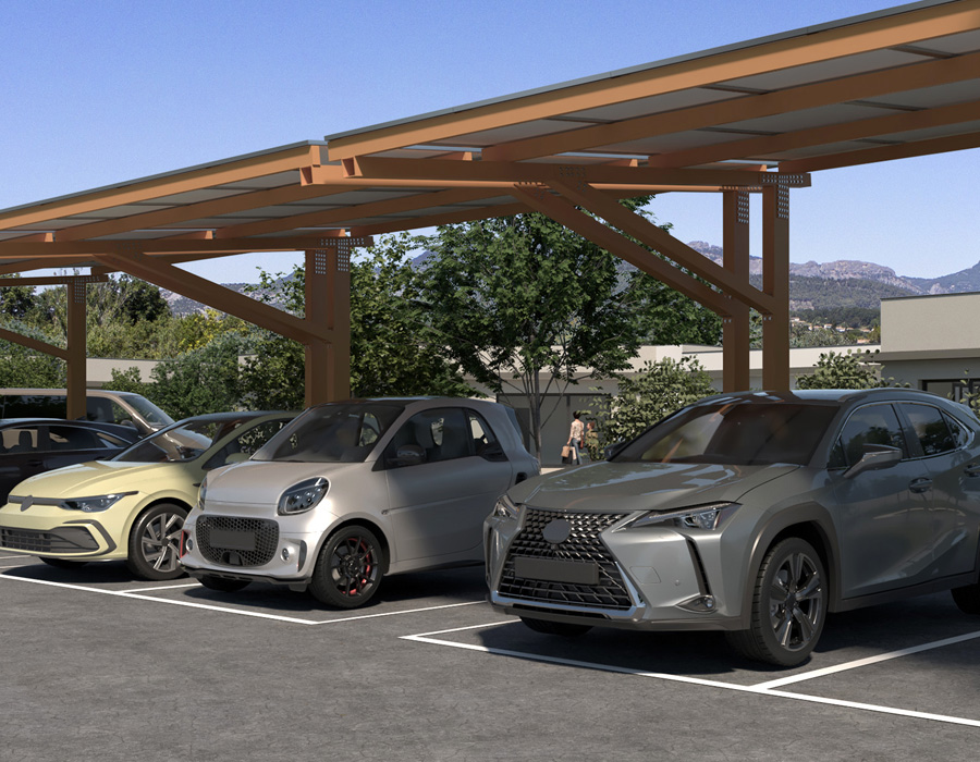 Nos produits Solipark, fabriqués intégralement en France, s’adaptent parfaitement à vos besoins, que vous recherchiez un portique simple ou une solution complète prête à l’emploi. Nos structures en acier peuvent être équipées d’une solution énergétique photovoltaïque, d’un couvert végétal, d’une ombrière à claire-voie, ou encore de voiles d’ombrage, selon les spécificités de votre projet.
