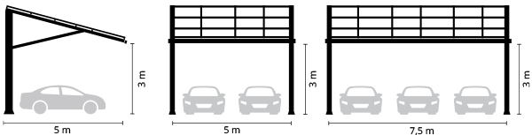 Ombrière mono-poteau en acier galvanisé avec un bas de pente à 3 mètres, offrant une couverture optimale pour 2 à 3 places de stationnement. Sa structure légère et robuste, reposant sur un unique poteau déporté, permet une installation rapide et un design épuré qui s’intègre parfaitement dans divers environnements. Cette ombrière est complètement personnalisable.